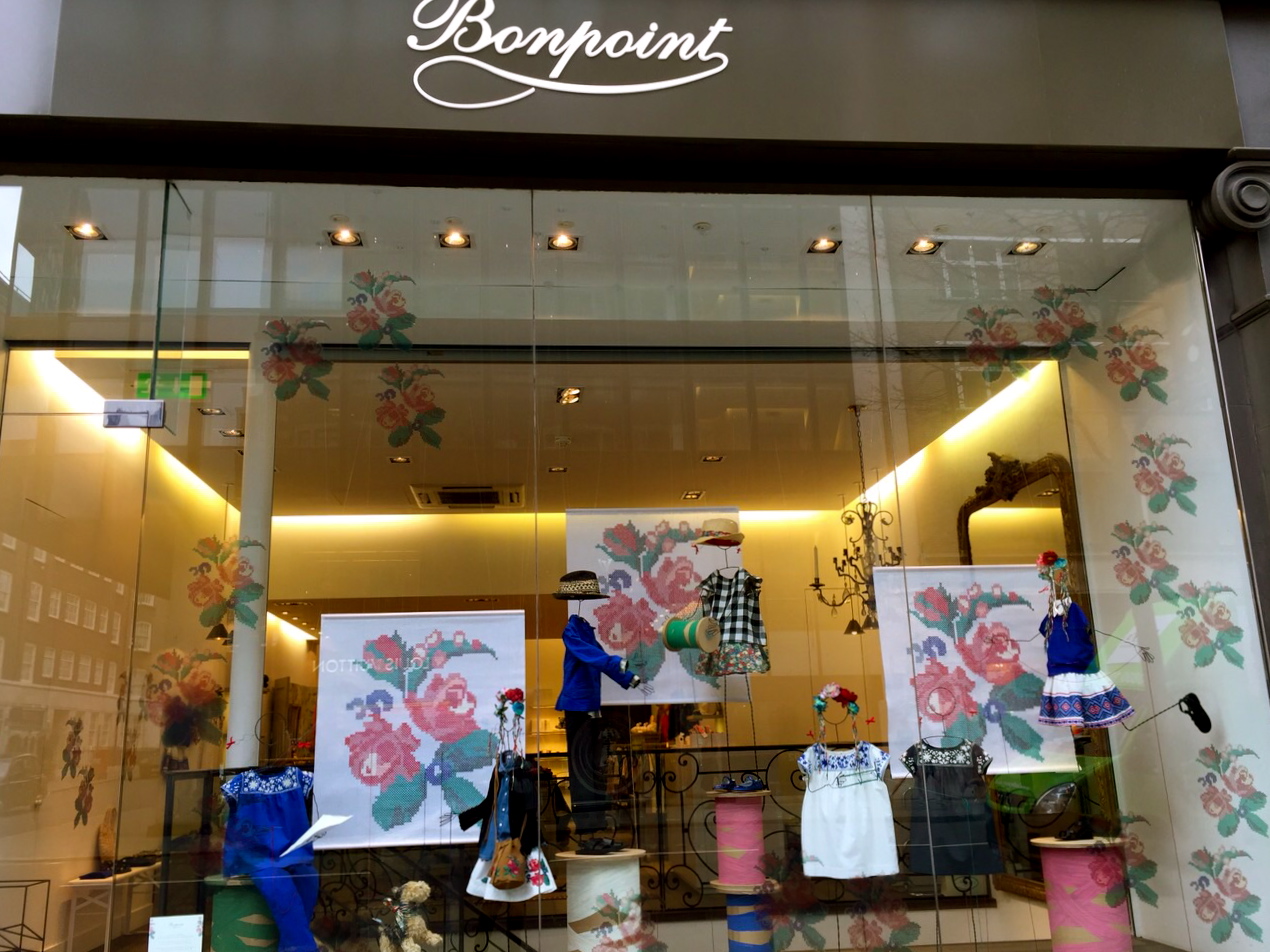 Bonpoint'in 2015 ilkbahar/yaz için yenilenmiş vitrini Londra'da karşıma çıktı. Vitrindeki kanaviçe ...